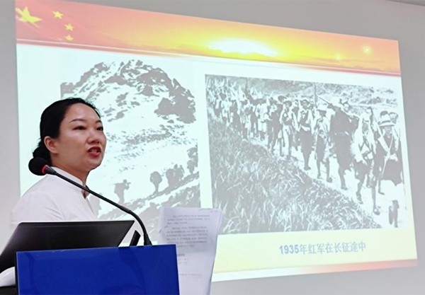 其间,在座的党员同志围绕如何弘扬长征精神畅谈了心得体会,纷纷表示通过聆听党史故事,思想受洗礼,初心更牢固,将坚持以人民为中心的发展思想,坚定理想信念不动摇,始终保持共产党人的政治本色,补足精神之钙,走好新时代“长征之路”,从容应对各种考验和挑战。紧接着是全体人员集体诵读毛泽东同志《七律-长征》,大家带着饱满的热情,将心中对红军的敬佩之情融入到朗诵中,再一次感受革命先烈用热血铸就的伟大长征精神深刻内涵。